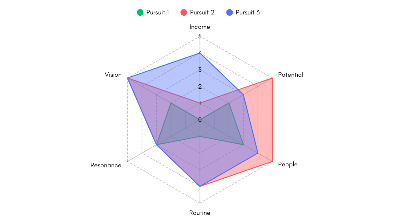 Income. Does this pursuit actually pay you? And if so, how much? Cash flow is different from potential, and it matters whether the work covers today’s bills or not.